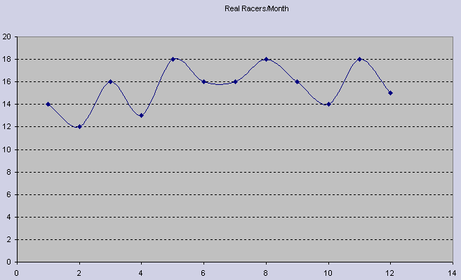 | RACERS | 14 | 12 | 16 | 13 | 18 | 16 | 16 | 18 | 16 | 14 | 18 | 15 |