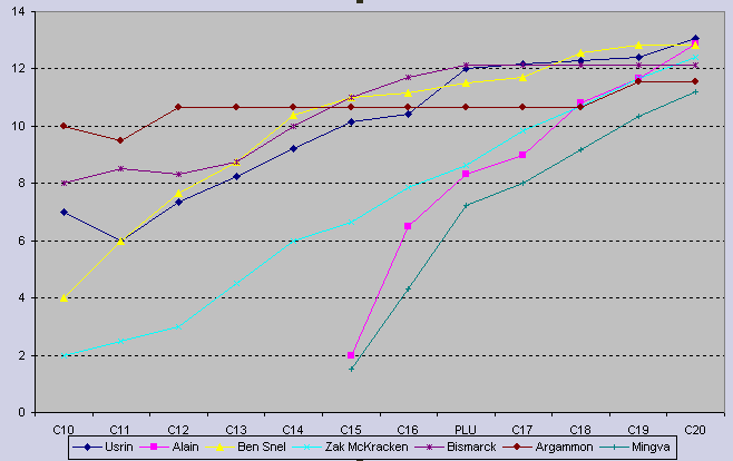 | Argammon | 10 | 9,5 | 10,667 | 10,667 | 10,667 | 10,667 | 10,667 | 10,667 | 10,667 | 10,667 | 11,563 | 11,563 |