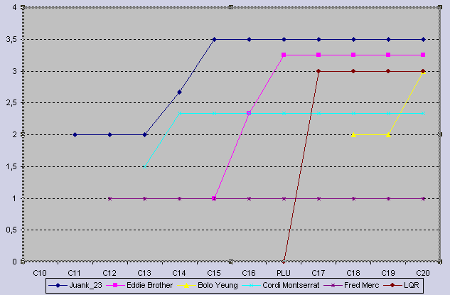 | Juank_23 | 0 | 2 | 2 | 2 | 2,6667 | 3,5 | 3,5 | 3,5 | 3,5 | 3,5 | 3,5 | 3,5 |
